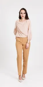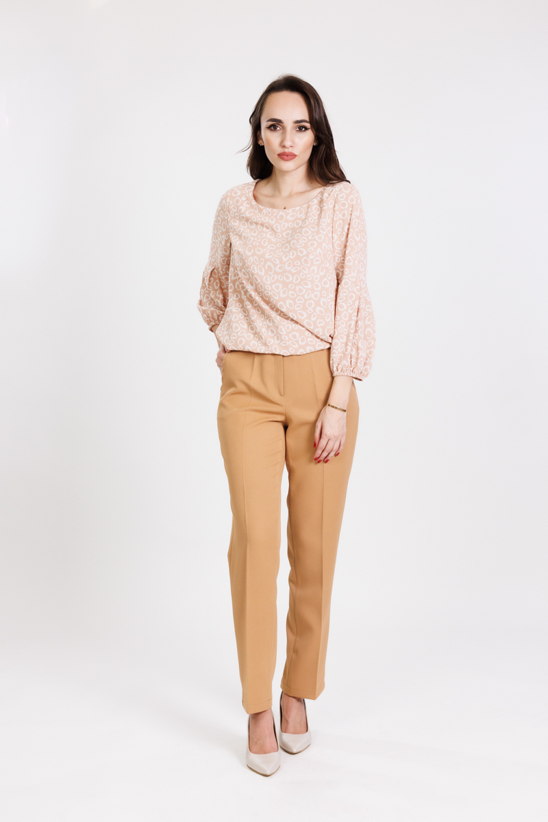 Bluza din material satinat imprimat simpla cu maneca incretita.