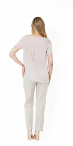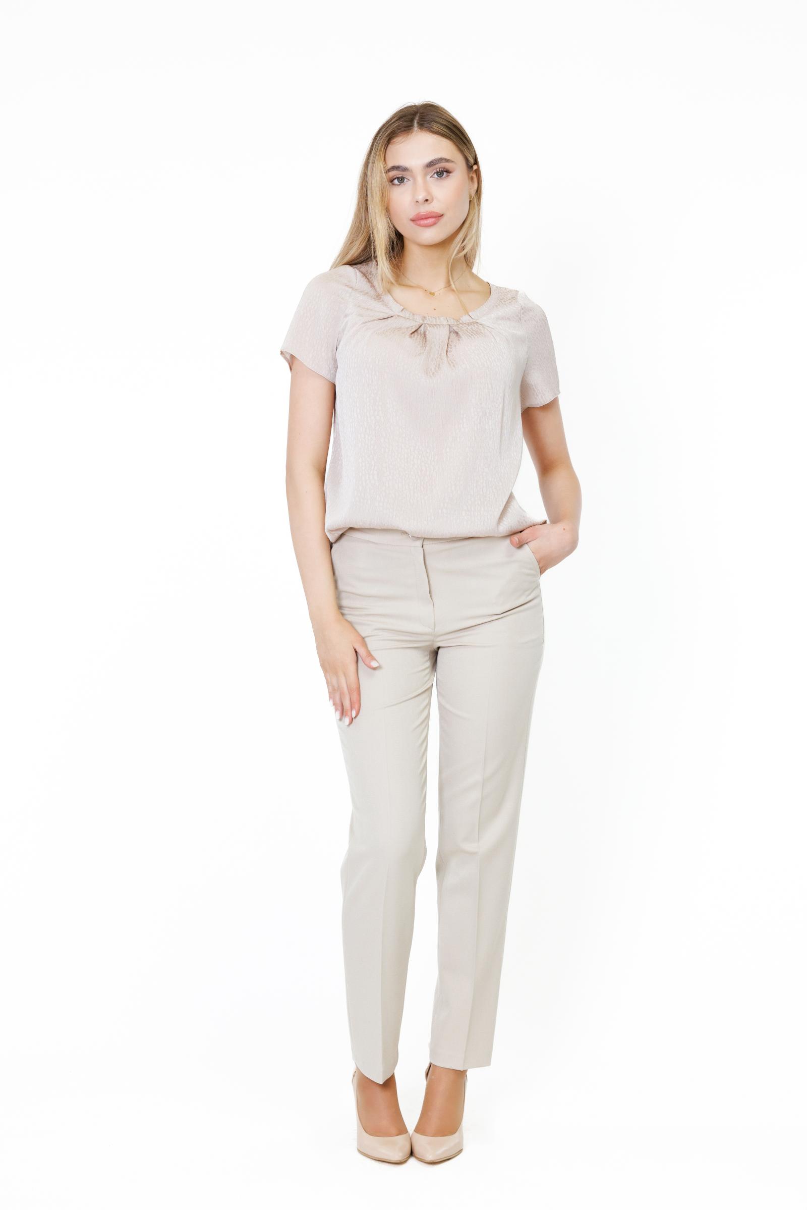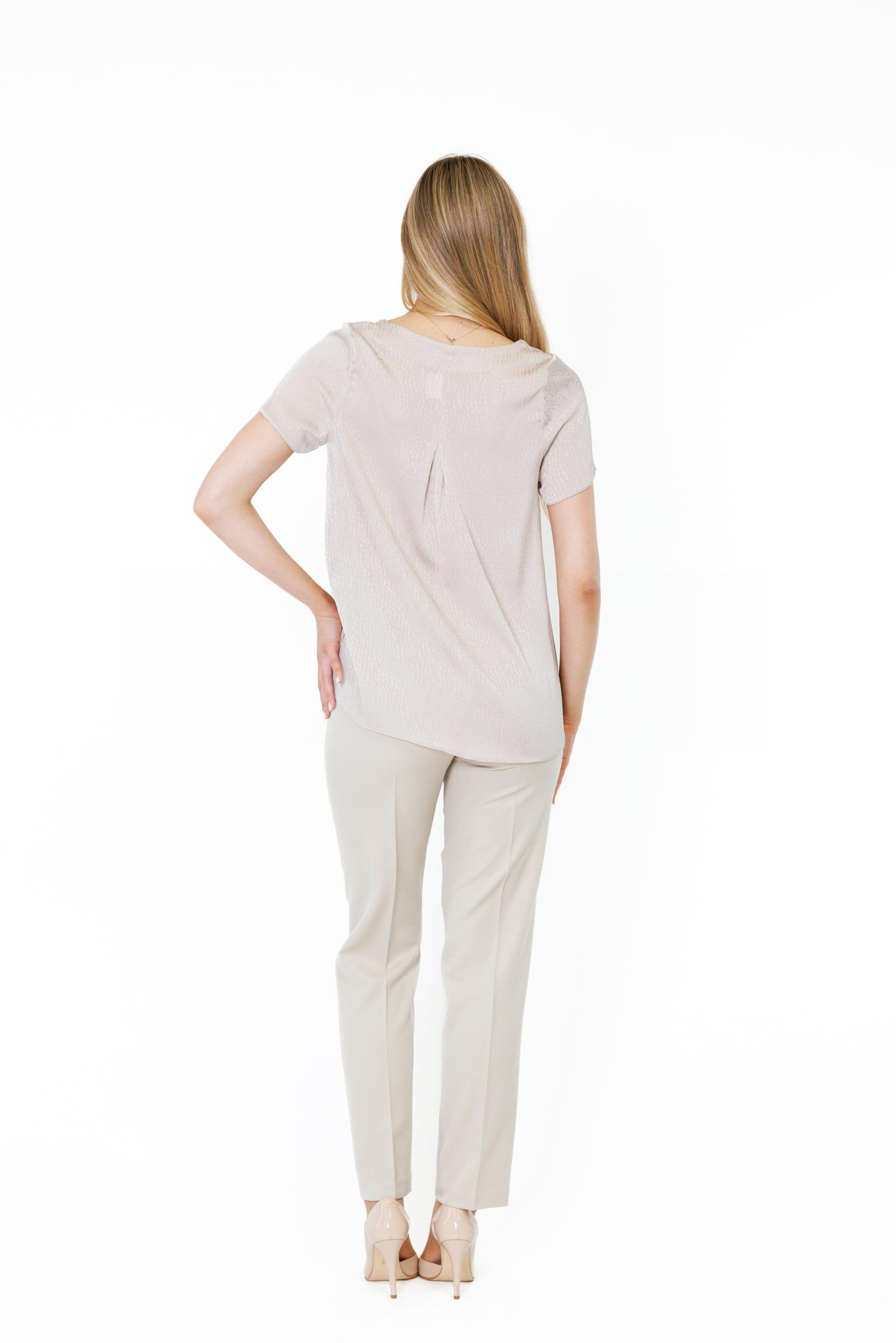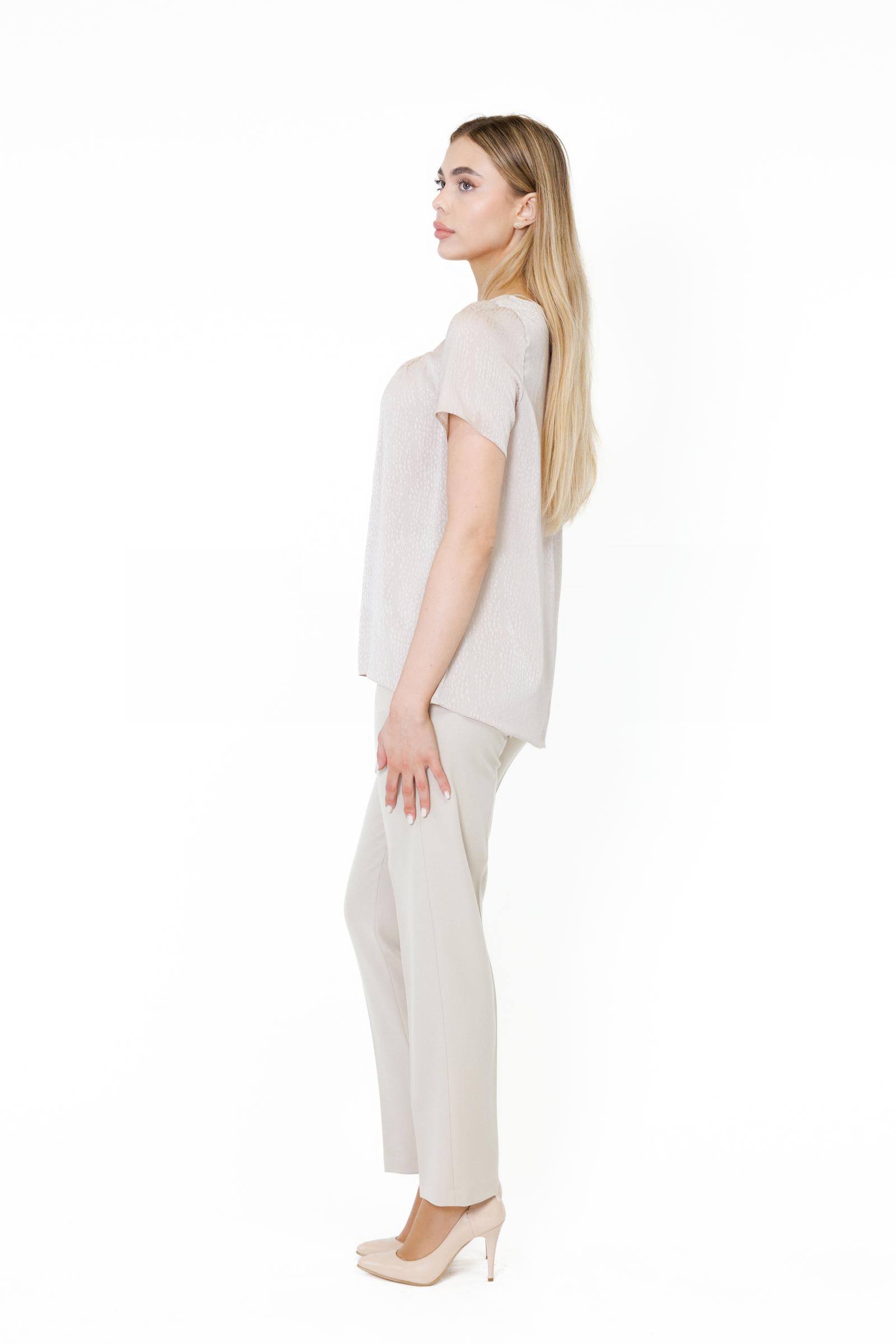 Bluza satinata cu pliuri duble desfactute la decolteu.