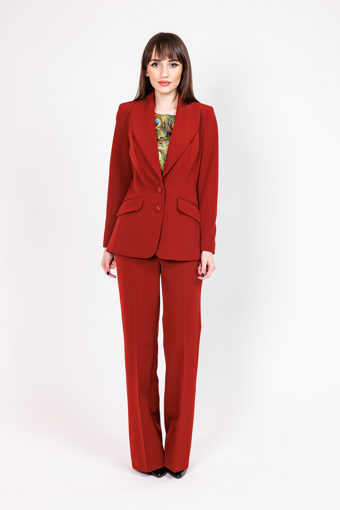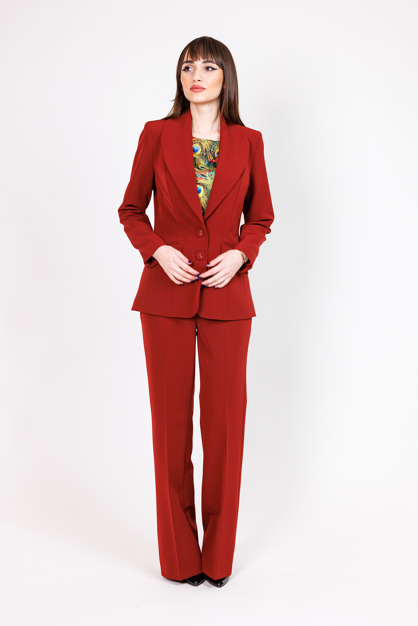 Sacou din stofa ,lung, cambrat cu guler sal, captusit